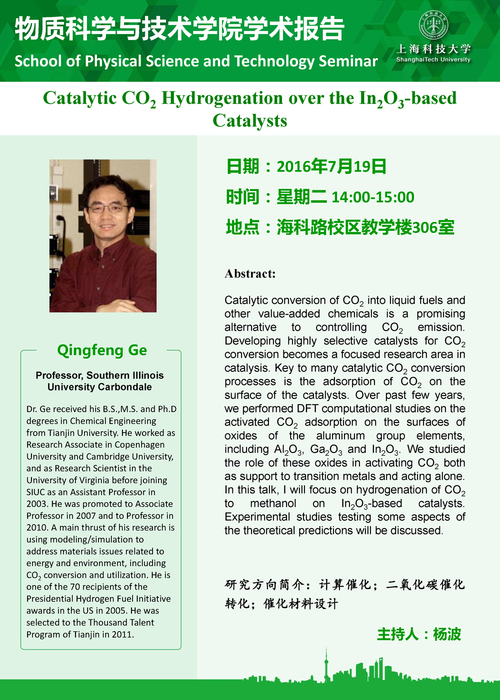 小妲己直播 学术报告—Catalytic CO<SUB>2</SUB> Hydrogenation over the In<SUB>2</SUB>O<SUB>3</SUB>-based Catalysis