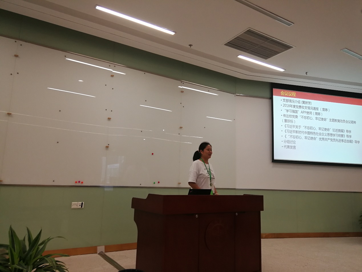2019年9月23日下午,小妲己直播 教工党支部在小妲己直播 4号楼103报告厅召开“不忘初心、牢记使命”主题教育党员大会。会议由党支部副书记黄娇芳主持。会上,党支部书记章跃标传达了学校党委关于“不忘初心、牢记使命”主题教育动员会精神,并带领党员们学习了《习近平关于“不忘初心、牢记使命”论述摘编》《习近平新时代中国特色社会主义思想学习纲要》和《“不忘初心、牢记使命”优秀共产党员先进事迹选编》等相关内容。