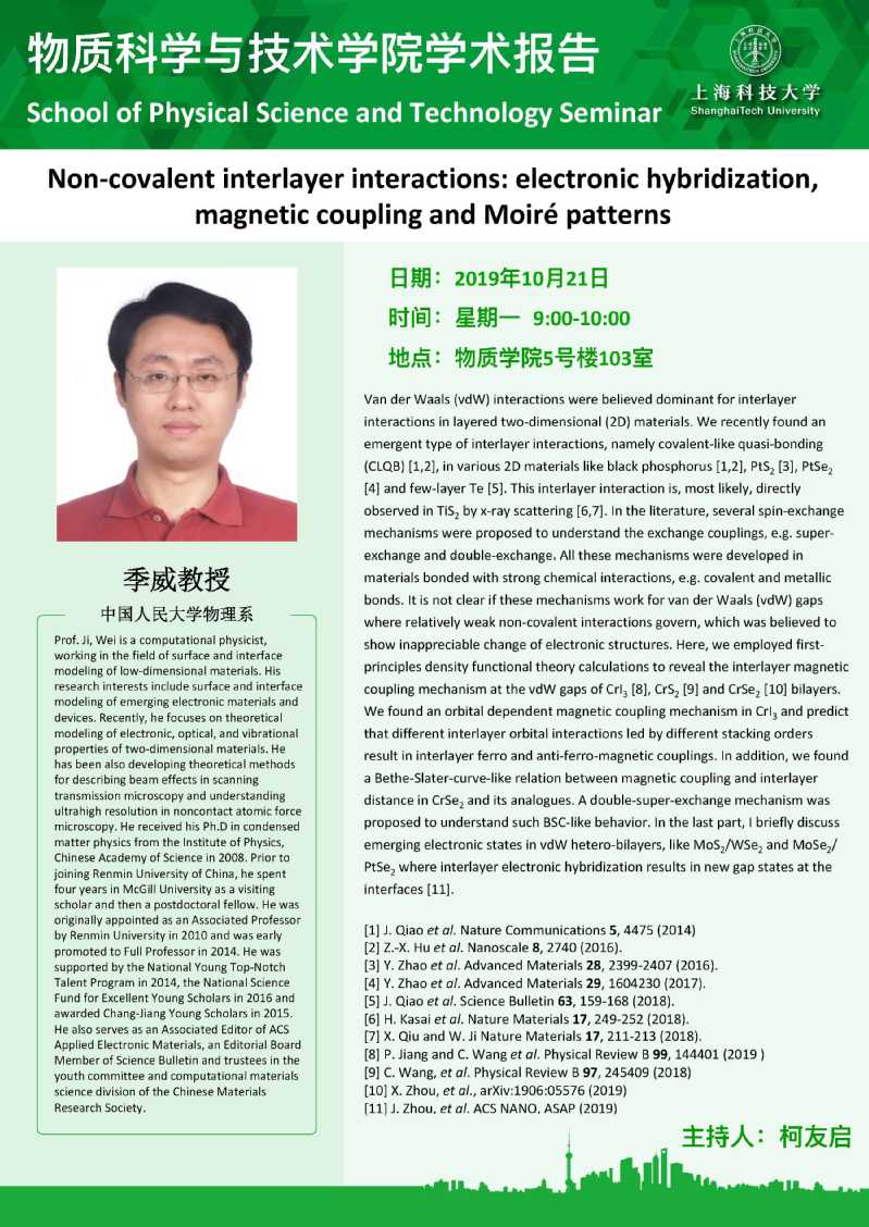 Non-covalent interlayer interactions: electronic hybridization, magnetic coupling and Moiré patterns