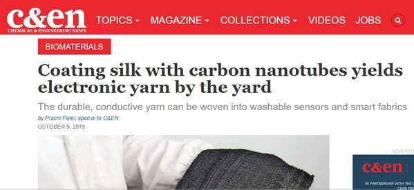 Chemical & EngineeringNews报道链接://cen.acs.org/materials/biomaterials/Coating-silk-carbon-nanotubes-yields/97/web/2019/10