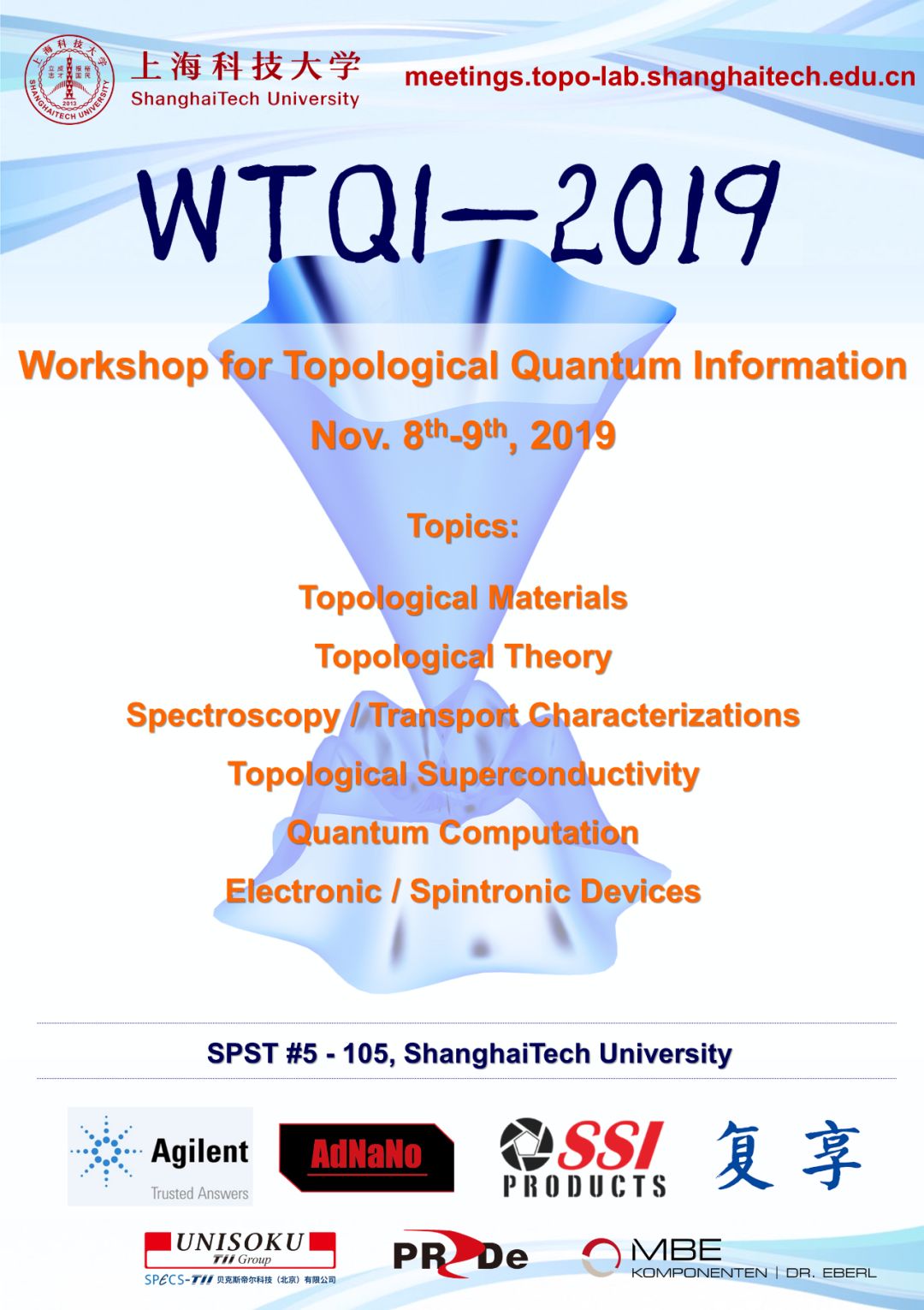 On behalf of the local organizing and scientific committees, we cordially welcome you to the workshop for topological quantum information-2019 held in Shanghai from Nov. 8th to Nov. 9th, 2019. The conference site is at ShanghaiTech University, which is located inside of Zhangjiang National Science Center and next to the Shanghai Synchrotron Radiation Facility.