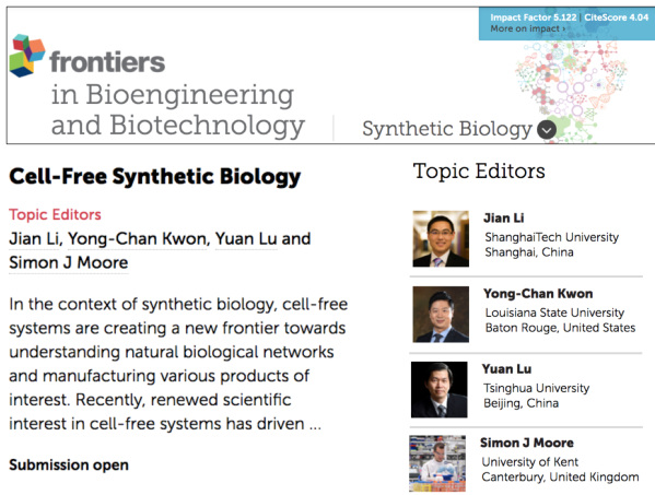 专刊链接://www.frontiersin.org/research-topics/12103/cell-free-synthetic-biology