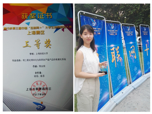 同时,陈安琪还和课题组团队其他人员一起就二氧化碳电催化还原进行一系列研究。二氧化碳电催化还原,作为清洁能源电力的储存手段,可以减轻化石燃料的依赖,同时也可以帮助实现二氧化碳的减排和利用,缓解温室效应。她的科研成果获得了如国际能源公司壳牌2019年度“壳牌能源研究与创新卓越奖”等多方面的认可。