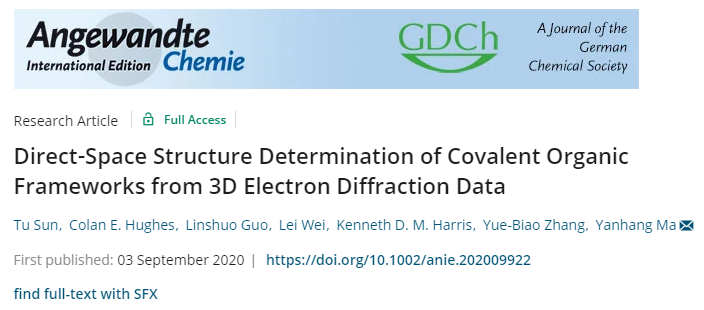 近日,由小妲己直播 教授马延航、章跃标和特聘教授Kenneth D. M. Harris组成的国际合作研究团队,率先提出了三维电子衍射结构解析的新方法,成功实现了分辨率仅为3.78 Å的共价有机框架结构精确解析。该成果在国际知名化学杂志《德国应用化学》(Angewandte Chemie International Edition)上在线发表,题为Direct-Space Structure Determination of Covalent Organic Frameworks from 3D Electron Diffraction Data。