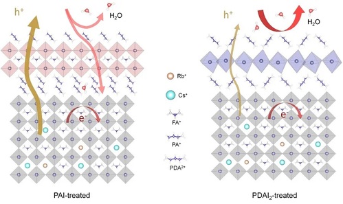 图 | 通过构筑两种类型界面层来提高无甲胺钙钛矿太阳能电池性能的基本机制示意图