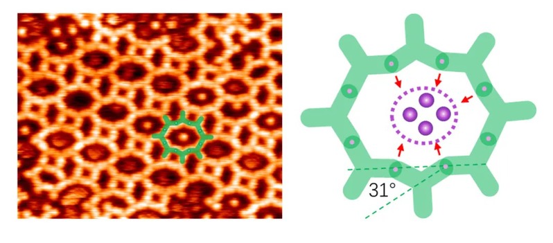 图3. 4-6-8边形交替的复杂二维网格结构及其稳定机制。