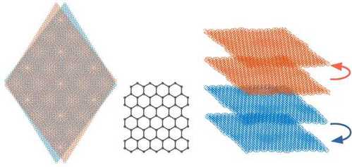 石墨烯是一种由碳原子组成的、形成蜂窝状晶格的单层二维材料,通常具有半金属的性质。当两个单层石墨烯相互堆垛到一起,并且相互之间有一个小角度的旋转,这时体系会由于转角产生具有长周期的摩尔条纹,形成摩尔超晶格体系(图1)。在这样的摩尔超晶格下,原本具有半金属性的石墨烯展现出一系列新奇的物性,包括超导性、量子反常霍尔效应、轨道磁性、以及关联绝缘性等等。这些新奇的现象不仅仅在双层的转角石墨烯中存在,在多层的转角石墨烯体系中也广泛存在。例如,人们在三层、四层的转角石墨烯体系中观测到了量子反常霍尔效应(一种具有量子化霍尔电阻的新奇输运现象)、由电子关联效应驱动的绝缘态、以及电荷在实空间具有指向性的排列现象(称为向列序)。这一系列新奇的现象值得在理论上深入研究,探索背后深刻的物理机制。
