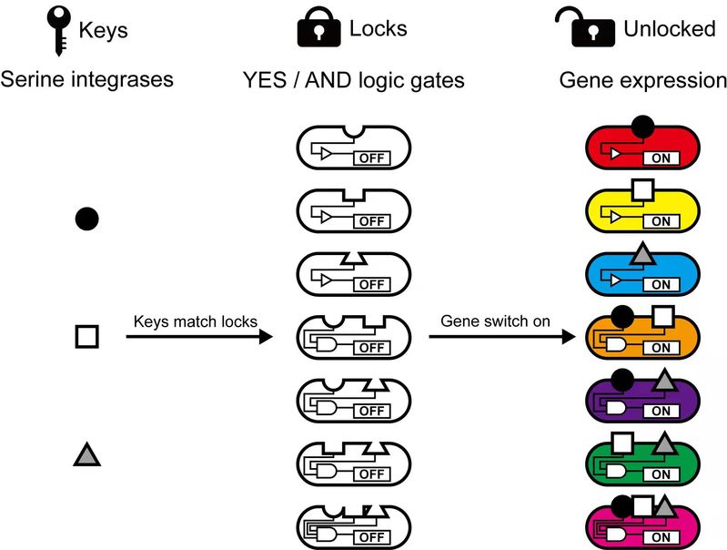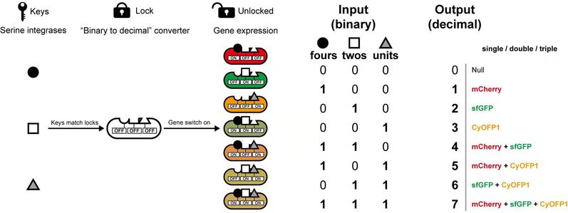 图2 | 基于丝氨酸整合酶设计的“锁-钥契合”模型,实现“二进制-十进制”信号转换
