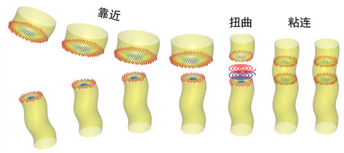 图1. 两套具有不同尺寸的斯格明子材料的耦合粘连过程。