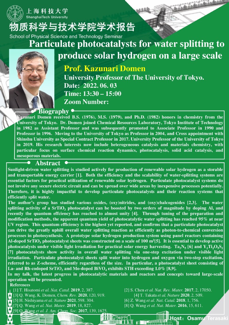 Particulate photocatalysts for water splitting to produce solar hydrogen on a large scale