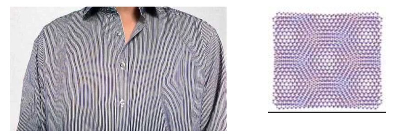 图一. 衬衣上的莫尔条纹和晶格中的莫尔条纹(图片来源互联网)