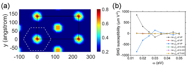 研究发现,实验上在个别整数填充上发现的零陈数态,是电荷分布自发破坏三重旋转对称性的密度波相(图3a),并具有很强的谷极化特征。进一步研究了几个分数填充下的轨道陈绝缘态和密度波态,可发现其呈现出谷间相干态或谷自旋极化态,这些计算结果均符合实验观测。此外,由于零陈数的“无特征”关联绝缘态在通常的输运或光学实验中无法体现出任何特殊信号,研究人员还采用对称性分析和非线性响应理论论证方法,分析了该体系所有可能的自发对称性破缺态所对应的非线性光学响应,并发现多数零陈数的“无特征”绝缘态由于其谷极化性质,会呈现出显著的非线性光学信号(图3b)。
