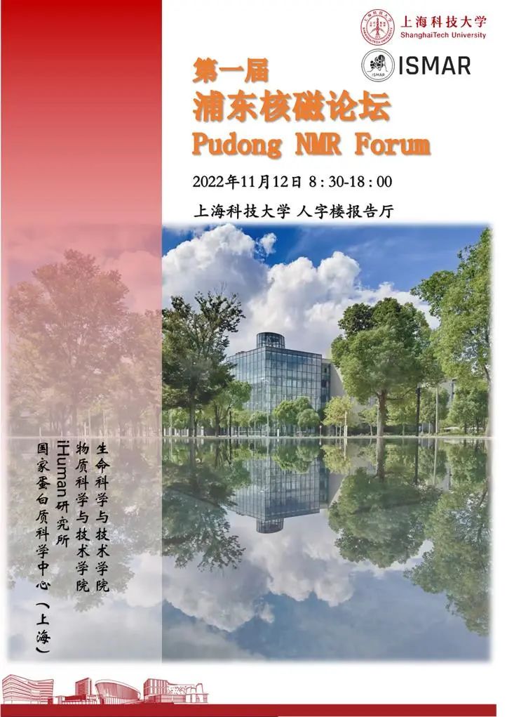 1st Pudong Nuclear Magnetic Resonance (NMR) Forum To promote the research on and the application of nuclear magnetic resonance spectroscopy in Pudong area and the greater Shanghai region, ShanghaiTech University will hold the 1st Pudong Nuclear Magnetic Resonance (NMR) Forum on campus on Nov 12, 2022. This forum will be a one-day, regional symposium, organized by School of Life Science and Technology, School of Physical Science and Technology, and iHuman Institute of ShanghaiTech, and co-organized by National Center for Protein Science (Shanghai) (NCPSS). It is also co-organized by International Society of Magnetic Resonance (ISMAR). ShanghaiTech and NCPSS together host a line-up of a dozen advanced NMR spectrometers spanning from 900 MHz (second highest field in China) to 400 MHz, including both liquid-state and solid-state systems, which strongly supports academic and industrial research in chemical, physical, biological, biomedical and material science as well as drug discovery, and hence forms a rapidly growing MR community. The forum is to provide a platform for NMR scholars, particularly younger scientists and students in the region, to closely interact with each other and regularly exchange latest research discovery and future technical or collaborative development of magnetic resonance, as well as exploring career advancement in the fields. Forum theme: NMR research, technology development, and applications Date: November 12, 2022 Time: 8:30 - 18:00 Location: the lecture hall, Y building, ShanghaiTech, Zhangjiang, Pudong, Shanghai, China Organizers: Junxia Lu, Haiming Liu, Dongsheng Liu (ShanghaiTech), Zhijun Liu (NCPSS) 第一届浦东核磁论坛 为促进上海浦东及周边地区核磁共振波谱学学术和技术交流,上科大生命科学与技术小妲己直播