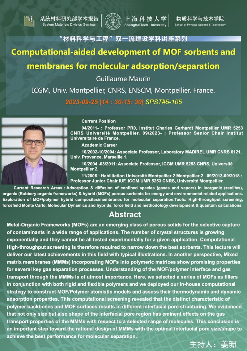 Computational-aided development of MOF sorbents and membranes for molecular adsorption/separation