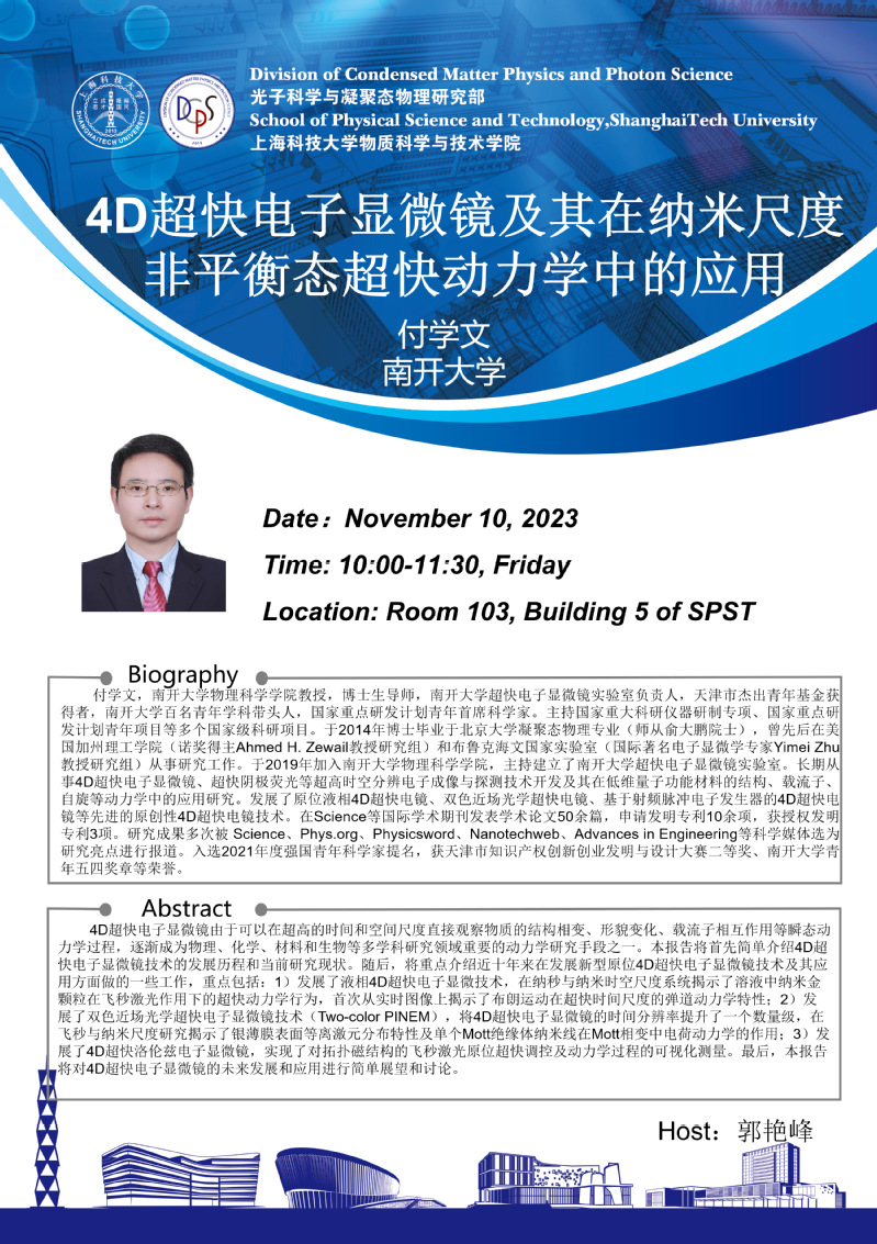 4D超快电子显微镜及其在纳米尺度非平衡态超快动力学中的应用