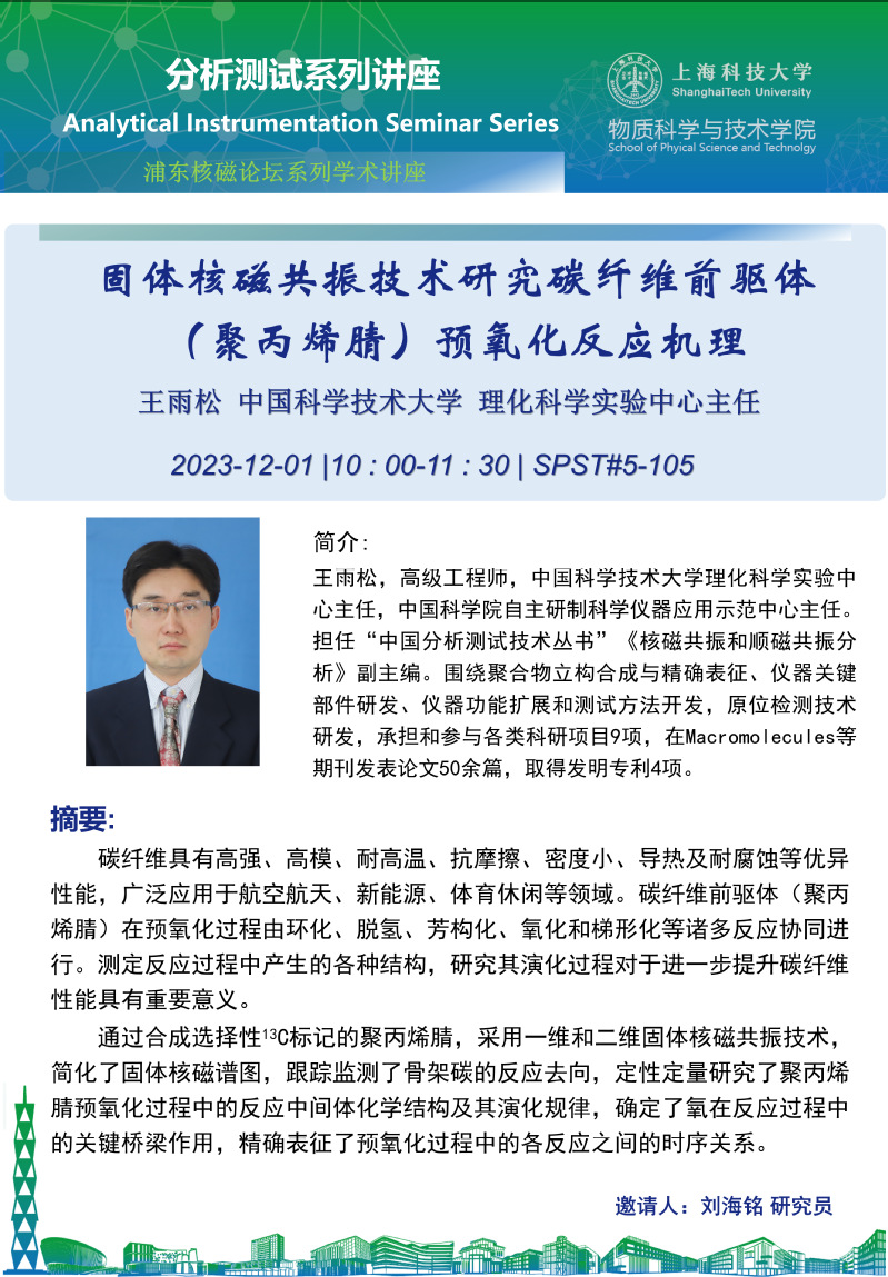 固体核磁共振技术研究碳纤维前驱体(聚丙烯腈)预氧化反应机理