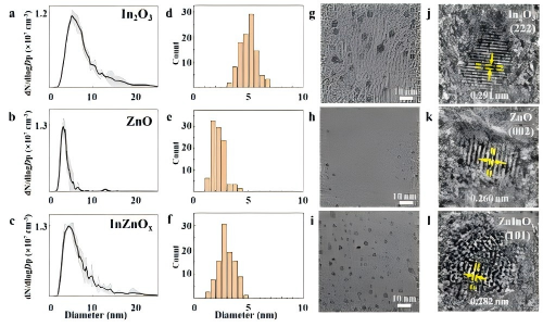 本工作首先在“人工闪电”等离子体环境中,成功制备出多种尺寸约5纳米的半导体材料,包括Si、Ge、ZnO、In₂O₃、InZnOₓ、GaAs和SiC等。该全干法工艺可有效避免配体污染,保障材料的高纯净度,尤其适用于对空气敏感的 GaAs、SiC 等材料。研究发现,纳米颗粒因超高表面原子比例而呈现类液滴的凝并行为,这一特性有助于在后续打印过程中实现融合生长,保障打印纳米结构的半导体性能。