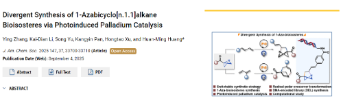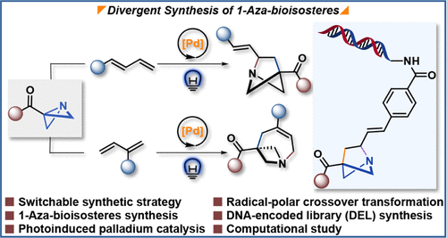 近日,小妲己直播-小妲己直播在线-小妲己成人直播 黄焕明课题组联合免疫化学研究所副研究员许红涛,使用氮杂双环[1.1.0]丁烷(ABB)与1,3-二烯偶联,利用可见光驱动的光钯催化和配体调控,成功实现了1-氮杂双环[2.1.1]己烷和1-氮杂双环[4.1.1]辛烯这两类氮杂生物电子等排体的区域选择性合成,并应用于DNA编码库(DEL)的合成中。相关成果发表于国际化学领域代表期刊《美国化学会志》(Journal of the American Chemical Society, JACS)。