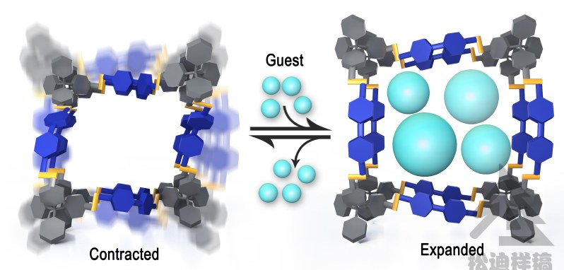 Dynamic responses of crystalline porous materials are highly desired properties to achieve extraordinary performance in sensing, adsorption & separation, gas storage, and heterogeneous catalysis, a periodic symmetry change in responding to extend stimuli such as temperature, pressure and guest molecule, evident by so-called ‘crystal-crystal transformation.’ These unique phenomena have been well-studied in the realm of metal-organic frameworks (MOFs), while it remains largely untapped in the emerging area of covalent organic frameworks (COFs), due to difficulty in structural elucidation. Design principle and systematic synthesis are therefore sorely needed to propel COFs into dynamic materials for their practical applications. By linking the tetrahedral organic building block entirely with imine bonds, a new three-dimensional COF functionalized with pyridyl groups has been synthesized through imine condensation, whose structure transformation accompanying the guest inclusion/release has been comprehensively identified via PXRD analysis, organic vapor sorption, and 129Xe NMR spectroscopy. The dynamic behavior was further integrated in the CO2 separation application, where a water gating effect was observed for further enhancement of CO2 uptake. The inclusion of large molecules, access of interior functionalities, and potential applications of heterogeneous catalysis were tested via the Knoevenagel catalytic reactions. This work will inspire rational design of dynamic COF materials and utilization of such functions in practical applications.